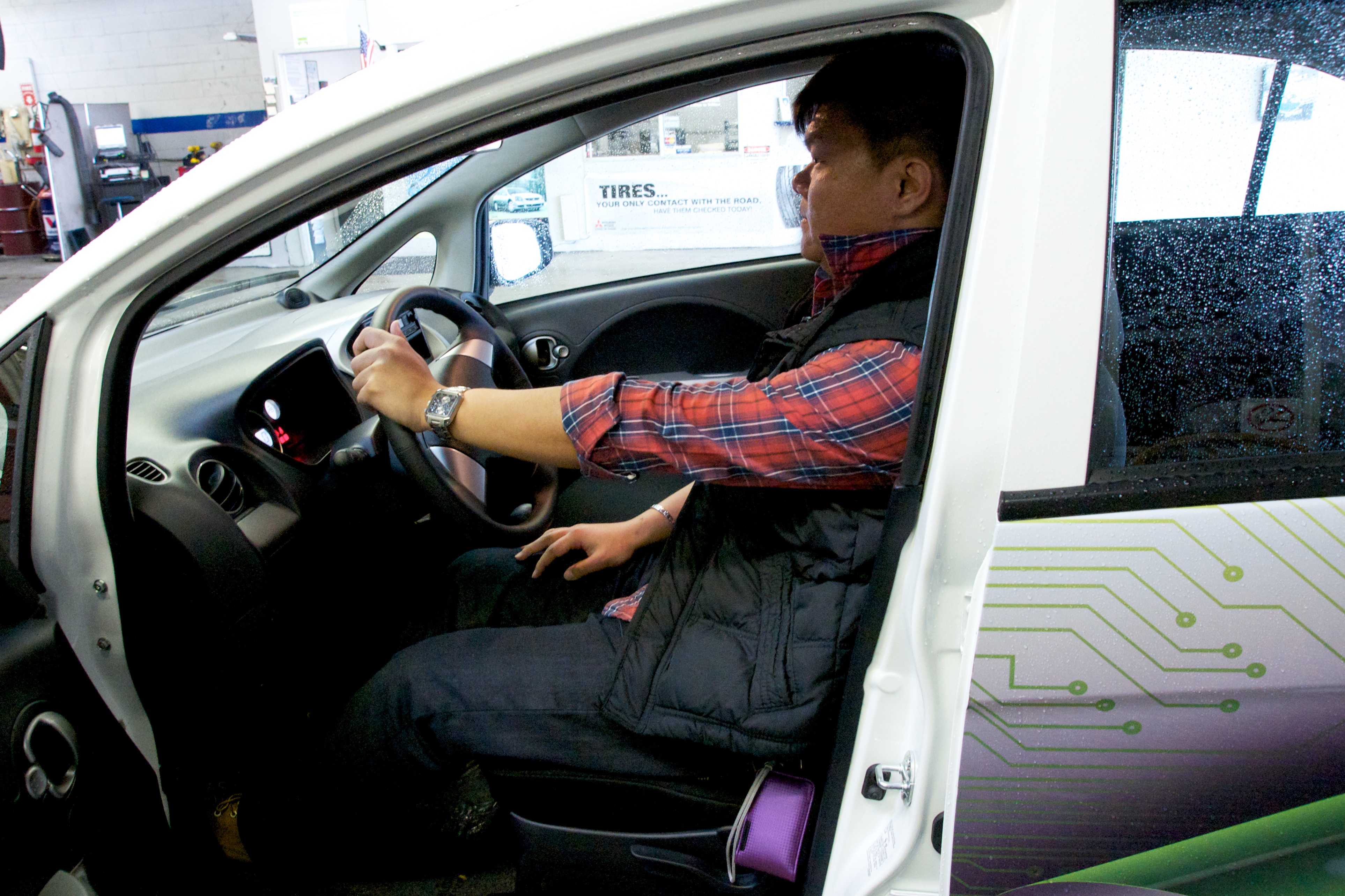 雖然此次試駕的地點為美國北加州,不過當地公關提供的車型是屬於i-MiEV歐規車型,在內裝方面由於歐洲習慣於較為簡單的內裝配備,因此一切從簡的裝備和未來即將在北美上市的車型有相當大的落差。除此之外,外型配上北美特有的大型保險桿,在車寬方面也增加六英吋,以符合北美民眾較為壯碩的身材以及當地特有的安全法規。在應付北美某些地區寒冷的氣候,i-MiEV也提供寒帶地區選配電池加溫系統。