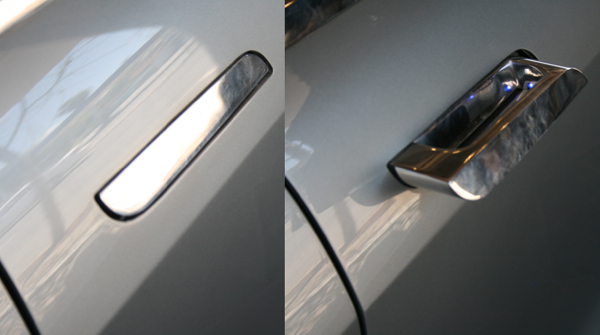 車門把手採用感應式彈出設定,當駕駛人接近車身時便會自動感應,只需輕觸門把便會彈出。在輪圈方面目前是配上21吋的輪圈搭配德國馬牌Extreme Contact跑胎,235/35ZR21的設定,儼然就是一副不好惹的樣子。