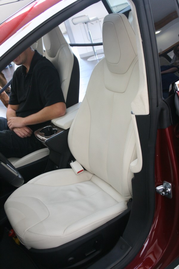 Model S Beta版的內裝實際上已經相當接近量產版本,只有些許細部還未達完美狀態。造型頗優的前座椅再肩部的包覆並不理想,而後座椅雖然是標準三人座設定,但幾無包覆性可言,若真的坐進三位成人,空間想必是捉襟見肘。
