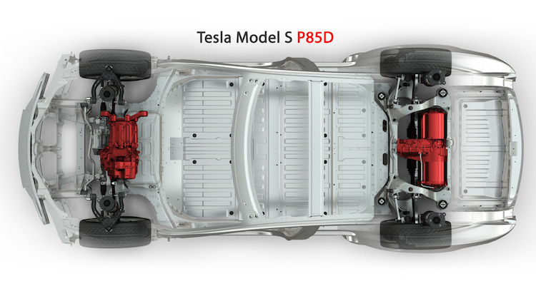 由於先前網路上的諸多揣測,讓Model S P85D未上市就已充滿神秘色彩。與原本的Model S P85僅僅一字之差的Model S P85 D何以引起眾家媒體的注目?原因就在於那神秘的字母”D”。根據原廠所披露的資料,Model S P85D用上了雙電動馬達(dual motor),除了原先P85後軸上的電動馬達外,P85D還另外在前軸上加上了一具輸出功率較小(224Ps)的電動馬達,使得原本為後輪傳動的P85搖身一變,成為了全時四輪驅動(all-wheel-drive)的P85D。