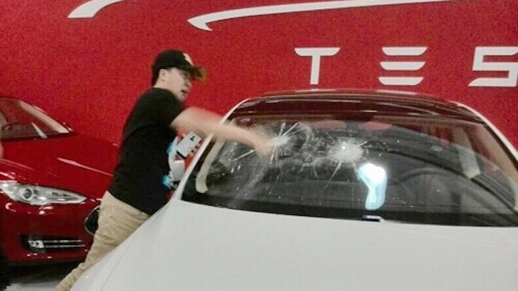 再來就是2014年4月,中國TESLA車主因為不滿新車交付延期,怒砸Model S新車洩憤的新聞。要知道,中國大陸的客戶不如美國客戶般理性,因為中國客戶總認為花錢的就是大爺,誰管你為了交給客戶更完美的產品而導致新車交付延遲?從第一輛TESLA Roadster開始,TESLA一向都是採取邊研發邊接受訂單的模式,殊不知這樣的模式在中國根本行不通。這也讓伊隆・馬斯克在訪問中國大陸期間,還特別向車主們致歉。不過這樣的做法顯然無法讓這批延遲交付新車的客戶滿意。而一向只在自家網站上進行售車業務的TESLA,來到中國大陸之後試著想要打進每年的「雙十一(俗稱光棍節)」的網上購物熱潮,和天貓(馬雲的阿里巴巴集團下所屬的T-mall)合作進行網路購車。殊不知這項被視為特斯拉中國先斬後奏的決策,引起了美國總部的關注和不滿。最終,事實證明特斯拉中國和天貓的合作未能成功,此案推出之後的10天就破局,成了烏龍一場。