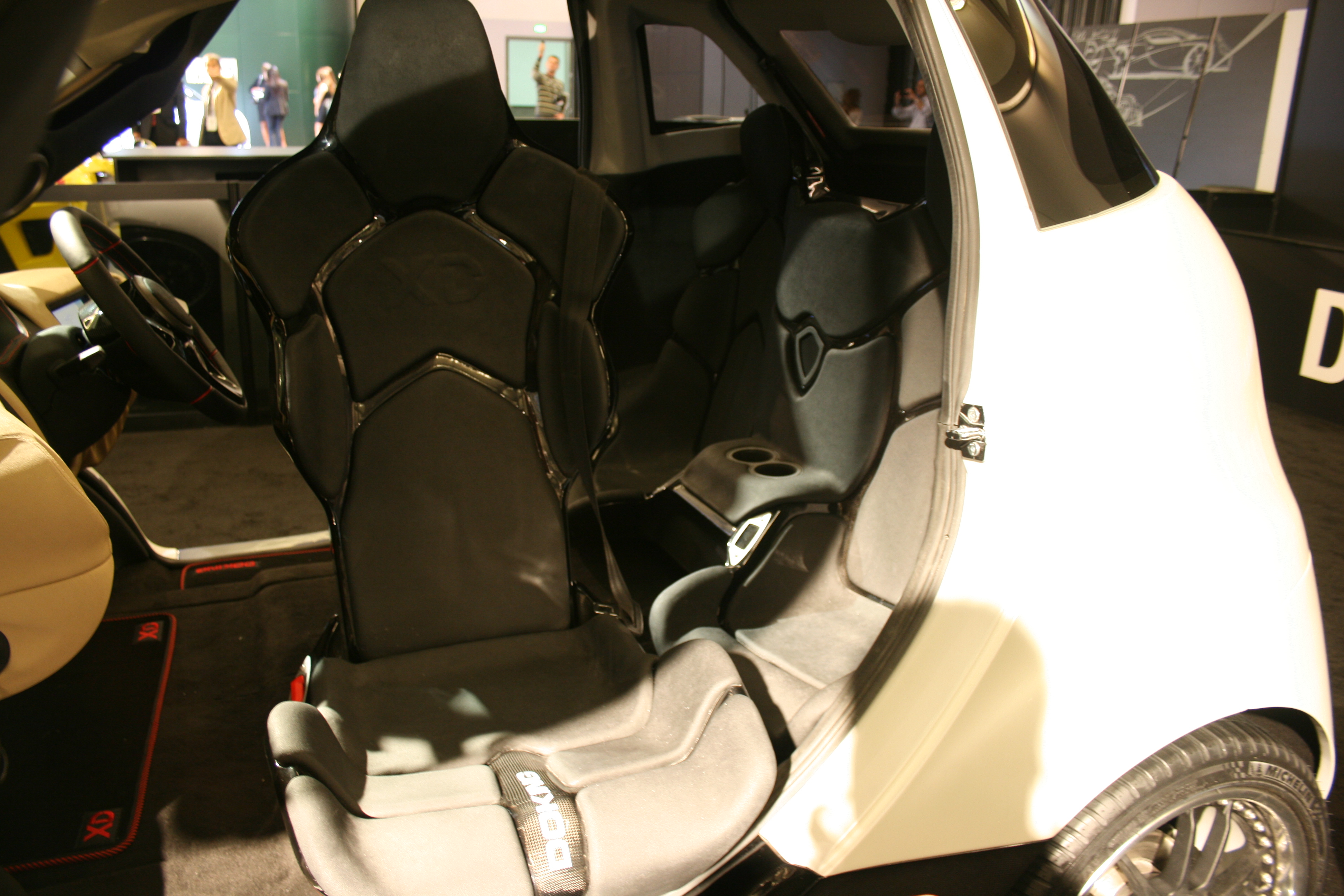 雖然只是原型車,但XD展現出高度的完裝度,尤其是那鷗翼式上掀車門以及中央駕駛座的設計,皆令人驚豔。在尾燈造形上更是獨樹一幟的使用交叉形狀來樹立風格。而設置於中央的駕駛座也讓這部小車擁有三個座位。同時為了方便進出,駕駛座還以電動旋轉至適當的位置,這樣貼心的設計肯定擄獲了不少女性買家的心。